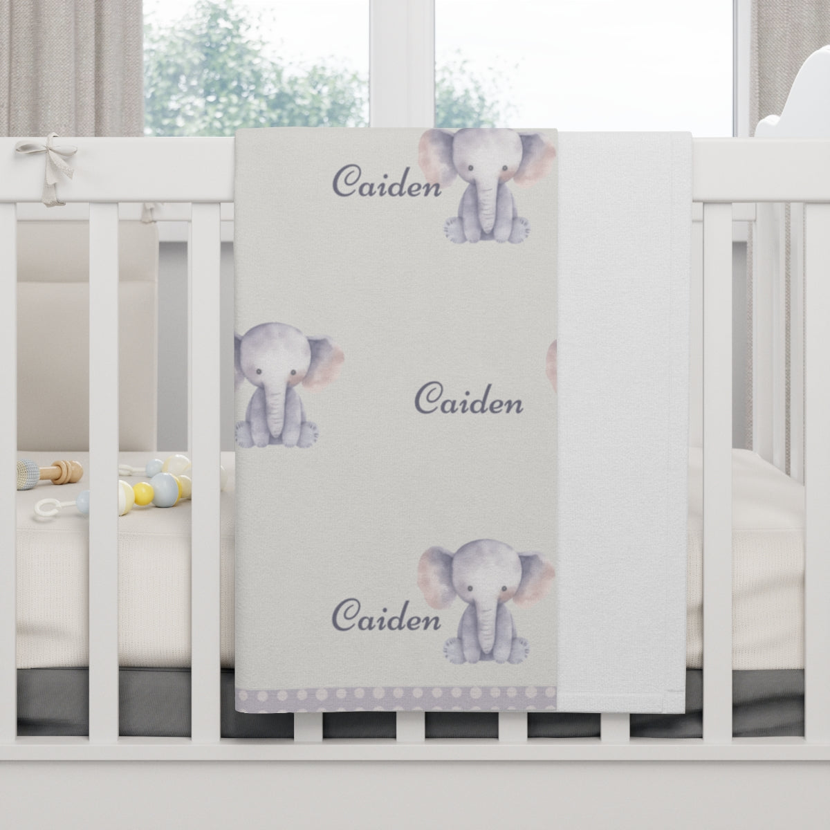 Baby Elephants Custom Personalized Soft Fleece Baby Blanket
